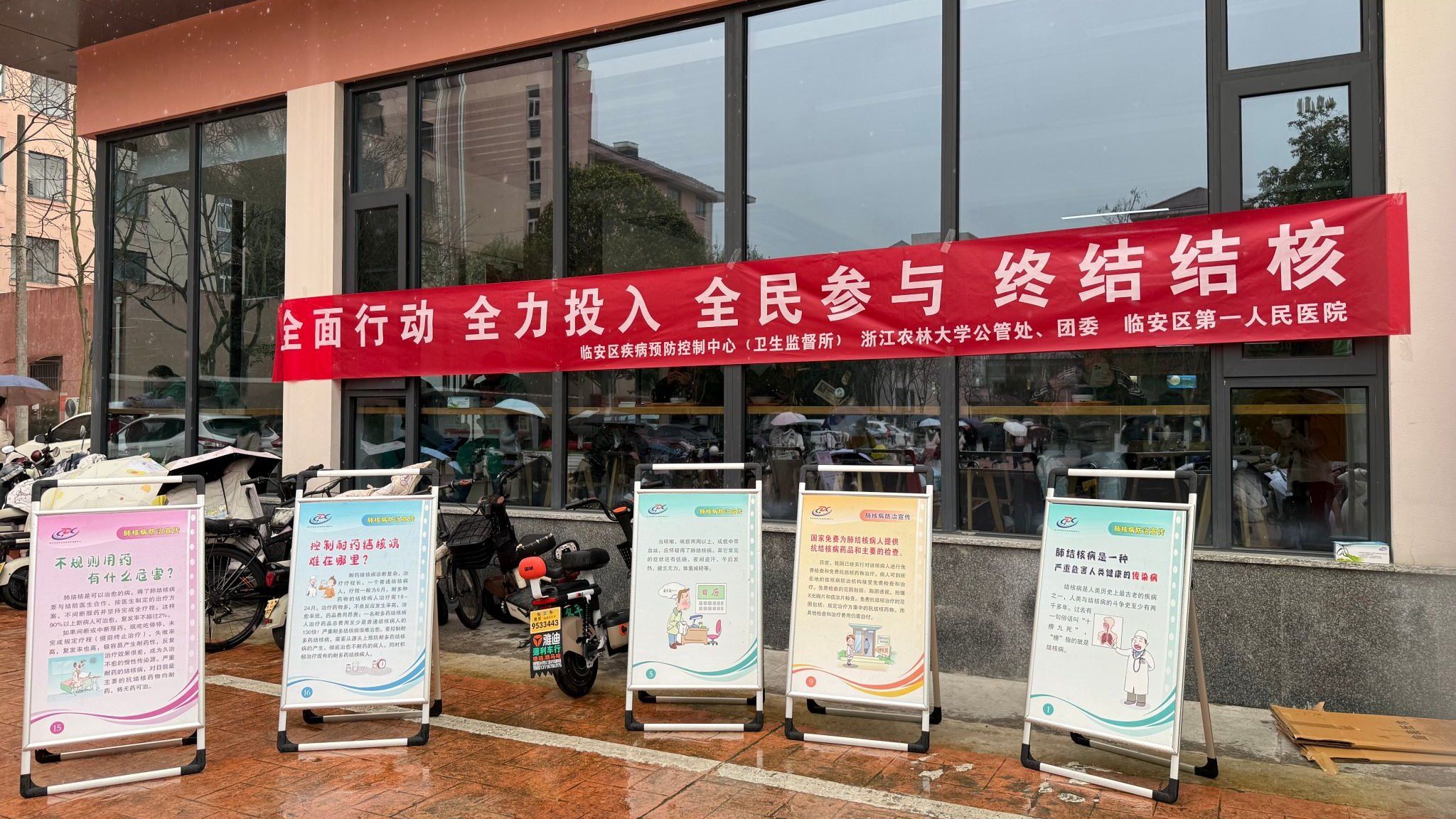 在第31个“世界防治结核病日”来临之际,3月24日,浙江农林大学联合杭州市临安区疾病预防控制中心、杭州市临安区第一人民医院,在东湖校区举办以“全面行动全力投入全民参与终结结核”为主题的系列宣传活动。